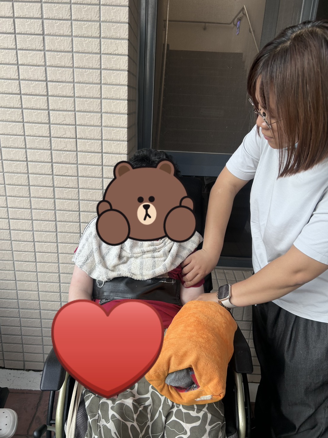 所以我們特別陪著他們到戶外吹吹舒服的小風、曬曬暖暖的太陽,